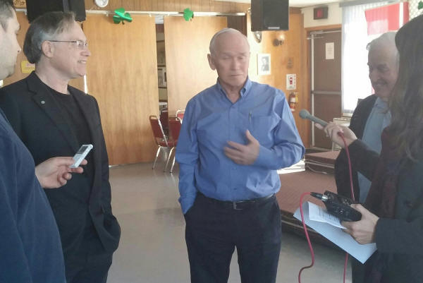 Media interview critics of Maley Drive Extension Project March 18th. Shown (right to left) Dr. David Robinson, Thomas Price and Gord Slade. Others who took part in the event at the Minnow Lake Canadian Legion included, John Gaul, Lionel Rudd, Liisa Toner-Lindsay, and Dot Klein who all spoke to the Sudbury Star, Northern Life and the CBC. Dr. Robinson, an economics professor at Laurentian University was especially critical of the plan and his media release can be accessed here. For Sudbury Star story (March 11th) on Alternatives for Maley Drive click here. Tom Price research preliminary material on Maley Alternatives: Introduction and overview click here. Benefits Matrix click here. Priorities ranking click here